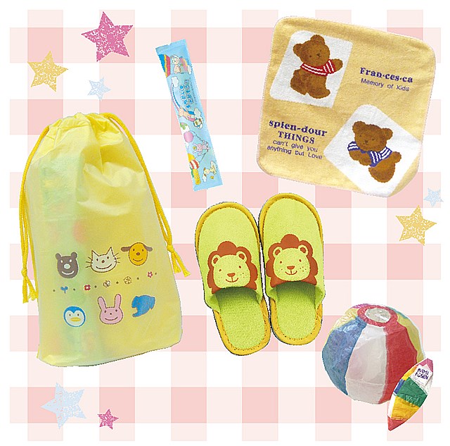 お子様に喜んで頂けるアイテムがたくさん入った宿泊セットです。