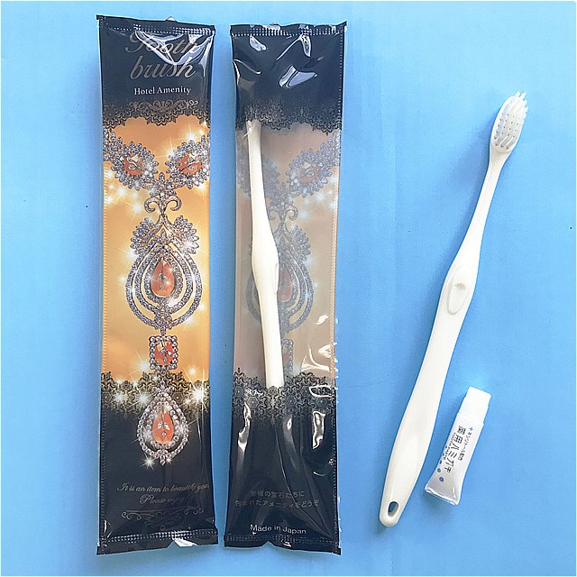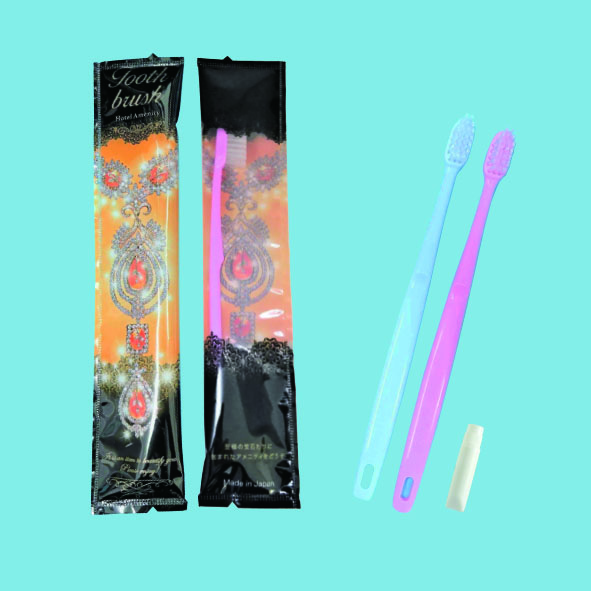 リーズナブルなスリムタイプの国産ハブラシ。キシリトール入り薬用ハミガキ3gのセットです。ご希望の施設様には初回導入時に、お部屋数分の「国産薬用ハミガキカード」を無償でご提供させていただきます。