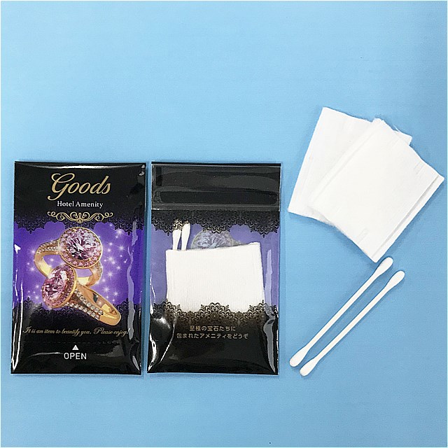 コットン2枚、綿棒2本の低価格コットンセット。女性用の宿泊アメニティとしてはもちろん、パウダールームのお化粧直し用としてもお使いいただけます。