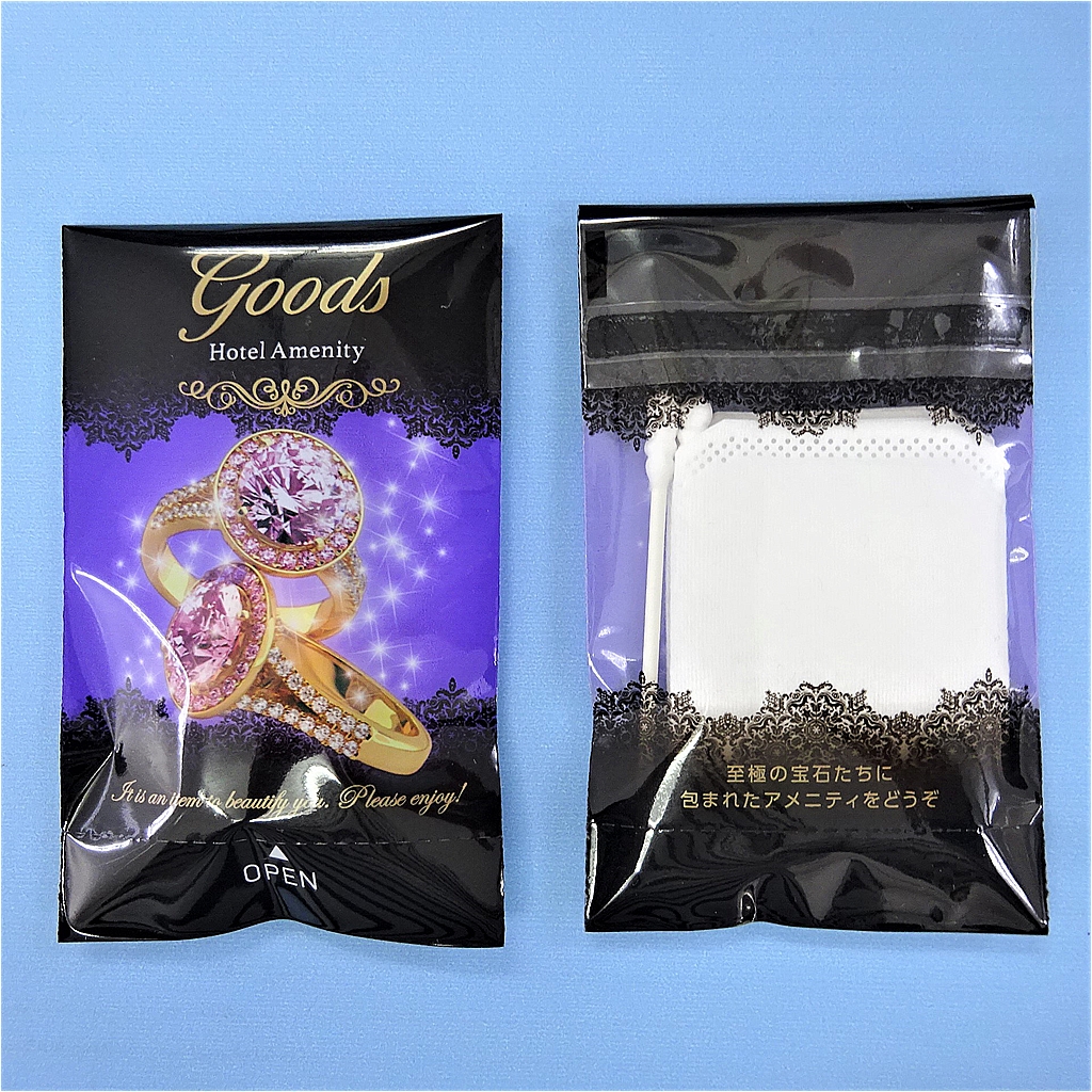 国産エチュールコットン2枚、スパイラル綿棒2本のセット。女性用の宿泊アメニティとしてはもちろん、パウダールームのお化粧直し用としてもお使いいただけるセットです。
