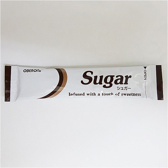 オベロンミルク・シュガーをかわいいフィルムで個別包装にしました。 また、環境に配慮した紙マドラー入りです。