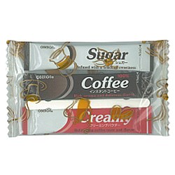 お湯にサッととけ、スプーン不要!コーヒー・ミルク・シュガーをベストミックスした、ロングセラー商品!