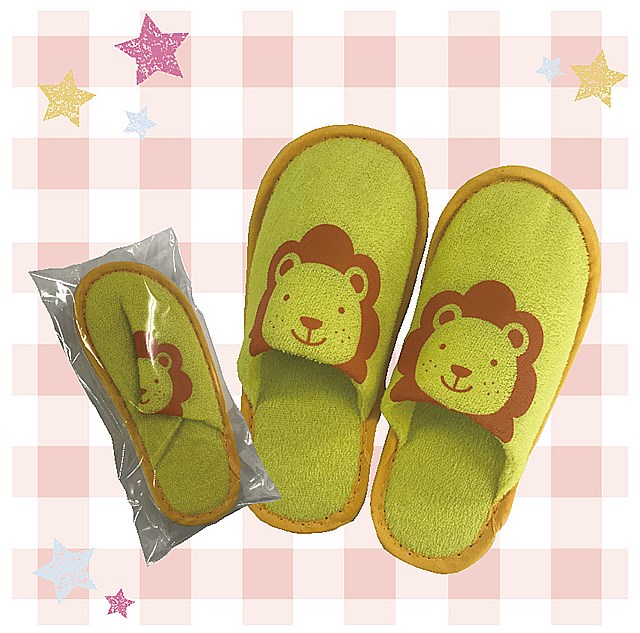 宿泊施設様やイベント会場など色々なシーンでご活用いただけます。かわいいライオンさんの絵柄が入ったお子さま向けの小さなスリッパです。(足サイズ15cm~18cm向け)