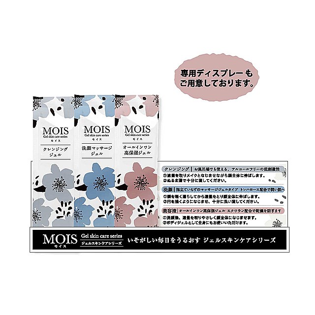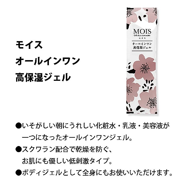 人気のMOISシリーズのスキンケア商品です。ジェルタイプの仕様になっているので、忙しい毎日にぴったりの簡単スキンケア!