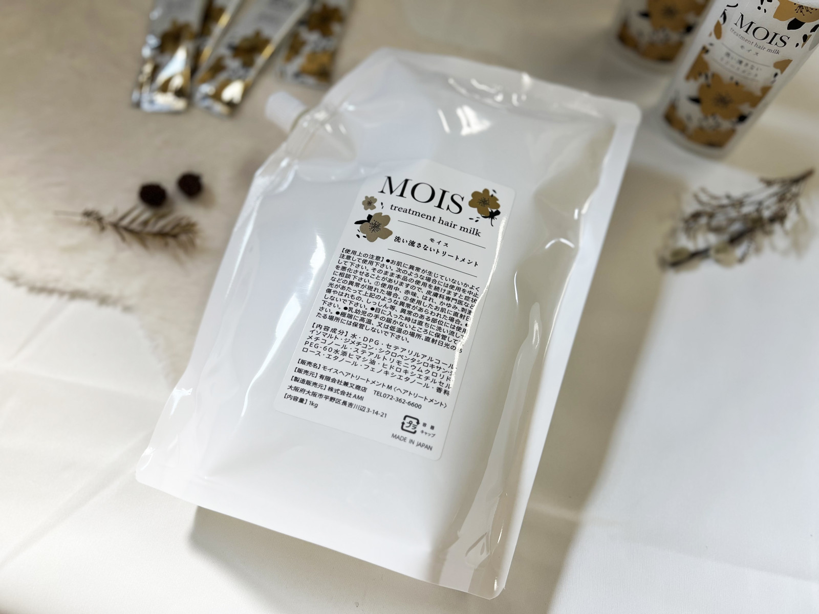 モイス洗い流さないトリートメントボトルタイプの詰め替え用です。パウチタイプで注ぎやすく、スパ関係や温浴施設、スポーツジムなど幅広い施設様でご利用いただけます。