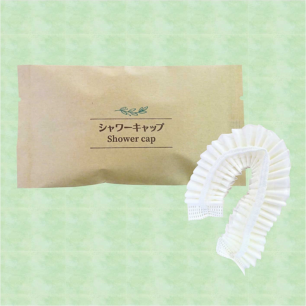PBAT(生分解性プラスチック)と、とうもろこしを原料としてつくられたシャワーキャップです。